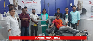कुमारी विनीता भारती ने कहा कि आज मेरे सौजन्य से मधेपुरा ब्लड बैंक में रक्तदान शिविर का आयोजन किया गया है. जिसमें हमारे नगर परिषद के लगभग दर्जनों छात्र युवा साथियों ने स्वेछा से रक्तदान किया. हमलोगों ने ठाना है कि मधेपुरा नगर में रक्त की कमी से किसी की जान नही जाने देंगे. आज उसी कड़ी में हमने रक्तदान शिविर का आयोजन किया है. रक्तदान-महादान है, रक्त ही एक ऐसी चीज है जो पैसे से पूर्ति नहीं की जा सकती. रक्त की पूर्ति सिर्फ और सिर्फ रक्तदान करके ही पूरा किया जा सकता है. इसलिए हर स्वस्थ व्यक्ति को 3 से 6 माह के अंतराल पर रक्तदान करना चाहिए. आज हमारे दर्जनों छात्र, युवा को दिल से धन्यवाद देते हैं जो कि आज मेरे कहने पर रक्तदान किये हैं.