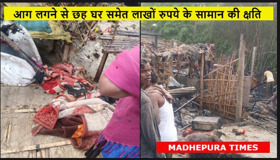 घटना की सूचना मिलते ही सीओ आकांक्षा के निर्देश पर राजस्व कर्मचारी धनंजय कुमार पांडेय घटनास्थल पर पंहुचकर क्षति का आंकलन कर रहे हैं। बताया गया कि प्रखंड क्षेत्र के रामगंज वार्ड 3 में रविवार को तकरीबन साढे चार बजे अचानक मसोमात अलोधनी देवी के घर में आग लग गई। देखते ही देखते म.अलोधनी देवी, राजीव राम, सुमन राम, वासुदेव राम, चन्दन राम व लालो राम का एक-एक घर समेत घर में रखा अनाज, कपड़ा, फर्नीचर, खाने पीने का आदि जलकर राख हो गया।